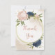Belo cartões de agradecimentos de casamento, com marinho e flores cor-de-rosa e folhas verdes. PARA MAIS PRODUTOS CORRESPONDENTES, clique na coleção acima ou entre em contato comigo