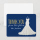 Cartões de agradecimentos personalizado com um vestido de noiva de na moda e brilho de ouro. Também disponível como um cartão dobrado. Visite o compro para ver mais. *Por favor, note que isto não é uma falha real.