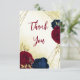 Cartão De Agradecimento marinho vermelho flores ouro folhas casamento