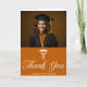 Um clássico cartões de agradecimentos personalizado de graduação em laranja e branco para uma faculdade ou universidade da classe de 2024. Personalize com seu nome escolar e classe graduada sob o caduceus e a caligrafia para um cartão com fotos elegante e personalizado de obrigados com seu retrato de mais velho.