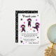 Crie uma celebração de aniversário memorável e divertida para o pequeno ninja na sua vida. Este cartão de agradecimento de festa de aniversário facilmente personalizável faz parte de um conjunto de acessórios de festa de aniversário. Você pode organizar a melhor festa de aniversário com tema ninja para o seu pequeno entusiasta de artes marciais. Basta adicionar seus próprios detalhes para personalizar, e não se esqueça de pratos, copos, guardanapos e todos os essenciais. Este design apresenta alguns pequenos ninjas fofos em preto e branco com um fundo de cores vibrantes.