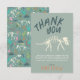 Este design de cartão de agradecimento de aniversário para crianças apresenta uma ilustração de fóssil de dinossauro em uma escavação, com um padrão jurássico correspondente no verso. Há também espaço para você adicionar sua própria mensagem de agradecimento.