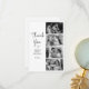 This modern wedding thank you card features a timeless black-and-white photo strip layout paired with minimalist typography and a clean white background. Four candid wedding moments line the front, while a heartfelt message of appreciation and your wedding date are elegantly displayed on the back. A small heart detail adds a sweet touch to this stylish design. Perfect for couples who want a classic yet contemporary way to say thank you to their guests.
