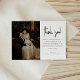 Modern Minimalistic Script Wedding Photo Thank You Card. Customize with a favorite wedding photo, personalized thank you message on the right, and add bride and groom initials to the back.