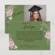 Cartão De Agradecimento Modern Pink Roses Script Graduation Photo