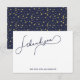 Cartão de nota de agradecimento simples e moderno em azul meia-noite com pontos falsos dourados em script bonito.