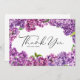 Envie agradecimentos com este cartão postal de agradecimento personalizável. Ele apresenta flores de lilás em aquarela com caligrafia caprichosa. Personalize adicionando seus detalhes. Este cartão de agradecimento floral é perfeito para uso pessoal e comercial.