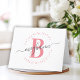 Cartão de Nota personalizado personalizado monograma personalizado, branco-branco-cinza-rosado, brilhante, moderno, elegante, minimalista e branco-rosado. Apresentando um original de monograma e um script de assinatura de nome feminino em uma letra de caligrafia escrita à mão, com caudas intermitentes e um círculo pontilhado ao redor do seu monograma. Perfeito para suprimentos profissionais femininos de escritórios residenciais, universidade de volta à escola, trabalho profissional, aniversário, casamento, chá de panela, donos de salões de beleza ou qualquer pessoa que ame o estilo minimalista do na moda bonito.