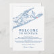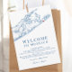 Bem-vindos aos seus convidados a Montauk com este elegante marinho azul litoral do mapa das Ilhas Longas do casamento. Apresentando uma mensagem calorosa de boas-vindas na frente e um itinerário detalhado na parte de trás, é perfeito para comemorações no Montauk Resort de Gurney, Montauk Yacht Club, The Surf Lodge, e 360° East em Montauk Downs. Uma na moda para compartilhar seus planos de fim de semana. Trabalho de arte por Designs de Mapa Costeiro.
