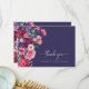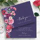 Cartões de agradecimentos de Casamento Floral Moody. Mostre sua gratidão com este cartões de agradecimentos lindamente trabalhado, com um buquê lateral impressionante de aquarelas florais em tons de joias ricas colocados contra um fundo azul marinho. Esta design é ideal para qualquer estação e traz calor para cair e casamentos no inverno e vibração para as comemorações de primavera e jardim de verão. Totalmente personalizável com a sua mensagem sincera, este cartões de agradecimentos oferece uma maneira atenciosa e elegante de expressar apreciação enquanto complementa perfeitamente a sua suíte de casamento. NOTA: o texto é Ivory.