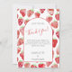 Cartões de agradecimentos doce, divertido e frutado de morango de cor d'água que você pode personalizar para se adequar ao seu evento. Altere o texto para personalizar e deixe o vazio da mensagem se quiser gravá-lo manualmente. Arte original de Nic Squirrell.