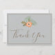 Linda nota floral de agradecimento permite que você mostre seu apreço por seus convidados no estilo clássico. A frente apresenta um lindo fundo azul com um design floral rosa e azul. "Obrigado" está escrito com uma bela fonte marrom. Peça o seu hoje!