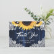 Thank your guest for sharing in your special day with these elegant navy blue and sunflower wedding thank you cards featuring sunflowers, string lights and delicate floral lace against a rustic wood background. Matching items available.