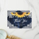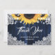 Cartão De Agradecimento Navy Blue Sunflower Wood Elegant Script Wedding