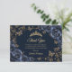 Navy gold Quinceanera celebration thank you card. Features, script font, butterflies, watercolor roses and tiara. Perfect for an elegant princess style glam celebration. Personalize with your own details.