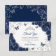 Cartão De Agradecimento Navy Silver Floral Quinceanera
