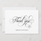 Este cartão de agradecimento com letra elegante apresenta um design sofisticado de caligrafia com arabescos em forma de coração sobre seus nomes personalizados em preto e branco clássicos. no verso há espaço para sua mensagem e endereço de retorno. Perfeito como papelaria formal de agradecimento de casamento, chá de bebê ou de noiva, ou qualquer outra ocasião em que você queira enviar uma nota sincera de amor e gratidão a familiares e amigos.