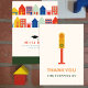 Novo formando sobre o tema de graduação neutra em bloco com ilustração em frente ao semáforo com texto "obrigados para passar". O verso apresenta casas e edifícios com o nome, o ano e a ilustração do boné de formatura.