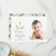 Estes cartões de agradecimentos da foto do baptismo na moda e à moda ou do batismo caracterizam uma grinalda geométrica do verde, folhas do ouro do falso do eucalipto da aguarela em um fundo branco com uma cruz do ouro do falso. É ponto morto do género tão perfeito para uma menina ou um menino.