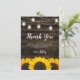 Obrigado liso do doce 16 rústicos você carda a caracterização de girassóis amarelos, de luzes da corda do frasco de pedreiro e de um fundo da madeira do celeiro.