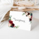 Este cartão de agradecimento de dama de honra outono rústico borgonha é perfeito para um casamento moderno. O design apresenta flores pintadas à mão radiantes e graciosas em borgonha, vermelho, azul-marinho, azul e rosa, inspirando beleza natural.