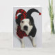 Cartões de agradecimentos que caracterizam um cão em um traje do bobo da corte.