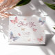 Diga um sincero "Obrigado" com este charmoso cartão de chá de fraldas de borboleta pastel! Apresentando delicadas borboletas aquáticas e sotaques de confete macio, é uma maneira doce e elegante de mostrar gratidão aos seus convidados por celebrar seu dia especial. Uma perfeita manutenção para um evento mágico!