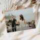 Um belo design de roteiro com uma imagem maravilhosa da noiva e do noivo. A imagem e a cor e o texto da nova versão podem ser personalizados. Adicione um obrigado pessoal que você envia no verso.