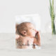 Personalizado com a foto do bebê na frente e a mensagem especial, as estatísticas de natalidade, os nomes dos pais dentro deste cartão dobrado de anúncio de nascimento. Este design usa uma fonte elegante e moderna para as palavras "Obrigado" por um toque de sofisticação. Expresse sua entusiasmo de anunciar o nascimento do seu filho e envie sua gratidão ao mesmo tempo. (design de formato vertical)