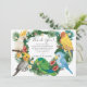 Cartões de agradecimentos Whimsical com ilustração de verde-aquarela tropical e adoráveis papagaios exóticos