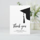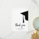 Script moderno, cartões de agradecimentos de graduação simples, preto e branco, com modelo de graduação minimalista, apresentando um boné de formatura com bruxelas, ++++++ Fácil de personalizar com seus detalhes e texto personalizado!