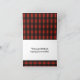 Obrigado temático do lenhador e do chá de fraldas da região selvagem você cartões com um urso de ursinho bonito em um boné da malha, uma camisa da flanela e uns suspenders e umas fraldas cinzentas com uma fralda fixa guardarar um machado com um coração nele na frente de um coto de árvore em um fundo vermelho e preto da xadrez. A aventura Begins é um tema apropriado para que a mamã ou os pais novos esperem um bebé. Personalize o que o exterior e o interno do cartão dizem. © Chrissy H. Estúdio dos trabalhos de arte, LLC. Todos os direitos reservados.