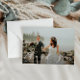Um belo design de roteiro com uma foto maravilhosa da noiva e do noivo. A imagem, a cor e o texto da nova versão podem ser personalizados. Adicione um obrigado pessoal que você envia no verso.