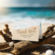 Modelos dos cartões de agradecimentos do casamento - o Sandy Beach do verão escreve no texto da areia com estrela do mar e Seashell.