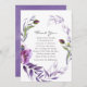 Flores violetas, lavandas e roxas em um chá de fraldas de coroa pintado à mão agradece as cartas projetadas para serem rápida e facilmente personalizadas de acordo com as especificações do seu evento.
