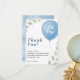 This blue balloon eucalyptus baby shower thank you card is ideal for parents-to-be seeking a blend of natural beauty and contemporary design to express their appreciation. The soothing greenery offers a calming backdrop, while the pops of blue balloons add a festive and celebratory touch, making your thank-you notes truly special. Whether your shower theme was modern botanical, rustic charm, or classic baby boy, these cards will perfectly complete your stationery suite.