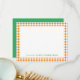 Um cheque de gingham laranja e um texto personalizado verde-jade é uma maneira charmosa de enviar notas pessoais com este cartão de nota de papelaria.