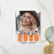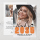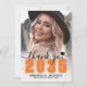 A classic yet modern graduation thank you card with a clean, timeless layout. The front features a full-page photo with a soft white gradient at the bottom that blends smoothly into the image. Over the gradient, “2026” is displayed in a bold, classic school-style font in orange, while “thank you” appears just above it in elegant handwritten script in black. A small graduation cap icon sits to the left of the year in black for a subtle celebratory touch. Below the year, the graduate’s name and school name are clearly displayed in black for a polished finish.
