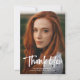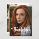 Budget Modern Lettering Simple 3 Photo Graduation Cartões de agradecimentos apresenta uma grande foto de cheio na frente, juntamente com duas fotos e seus agradecimentos anotam detalhes no verso.