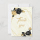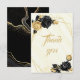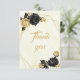 Cartão De Agradecimento ouro elegante e flores pretas botânicas