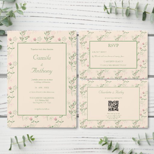 Pink Green Retro Y2K 70s Flower Pattern Wedding Criado por Dia Sha