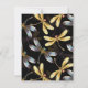 Padrão sem costura com ouro, joias, libélulas brilhantes com asas brilhantes e detalhadas sobre fundo preto. Dourada libélula.