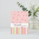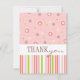 Um design contemporâneo para uma futura mãe. Coordenar padrões de listras e círculos sutis em cor-de-rosa pastel, ameixa, verde e marfim torna um cartões de agradecimentos personalizado adorável e barato para nosso convite de coordenação de chás de fraldas.