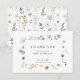 Cartão de agradecimento moderno boho com moldura de aquarela floral com flores silvestres e um padrão correspondente no verso.