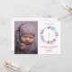Cartão de agradecimento de batismo de bebê floral rosa e azul. Apresenta uma coroa de peônias em aquarela e foto do bebê. Itens correspondentes disponíveis.