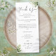 Um cartão de agradecimento de recepção de casamento floral elegante com folhagem. Personalizado com sua mensagem especial de agradecimento em tipografia estilosa. Um agradecimento especial para seus convidados. Criado por Thisisnotme©