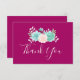 Um cartões de agradecimentos com fundo magenta. Um buquê de aquarela de cor pastel no topo. As flores, folhas e galhos são cor-de-rosa pastel e verdes. Criado com tinta aquosa e digitalizada.