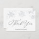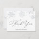 O cartões de agradecimentos apresenta uma cascata de falso falso falso falso falso falso prateado flocos de neve. Personalize com suas informações ou clique em "Clique para personalizar mais" para editar estilos de fonte, tamanho e cores. Também pode ser personalizado no verso com sua própria mensagem digitada ou excluir este espaço para escrever manualmente seu próprio obrigado.