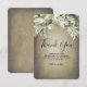 Cartões pequenos de agradecimento para chá de noiva com folhagem em aquarela e fundo de madeira rústica