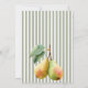 Este Cartão de Agradecimento de Pérola Perfeita une a sua celebração com charme e sofisticação. Projetado com peras em aquarela, listras suaves em verde sage e sotaques retrô elegantes, é a maneira perfeita de mostrar gratidão após um chá de noiva, chá de casal ou festa de noivado. O estilo atemporal de "dinheiro antigo" o torna versátil para qualquer evento sofisticado, mantendo vivo o tema divertido de "par perfeito". Combine-o com convites e sinais de boas-vindas correspondentes para um conjunto harmonioso que os convidados adorarão.